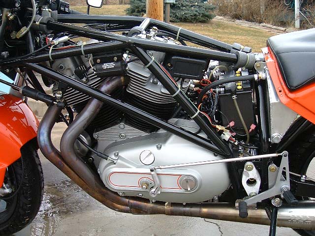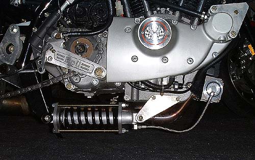 Das Verkleidung basierte auf der Harley Davidson XRTT, die im CalTech-Windkanal in den späten 60er Jahren entwickelt wurde. Erik fügte einen großen vorderen Kotflügel hinzu. Der seltsame Heckabschnitt und der Tank ergaben das aerodymamischte Motorrad, das jemals gebaut wurde (sagen die Amis!). Die RR1000 soll einen niedrigeren cw-Wert als die Hayabusa haben.